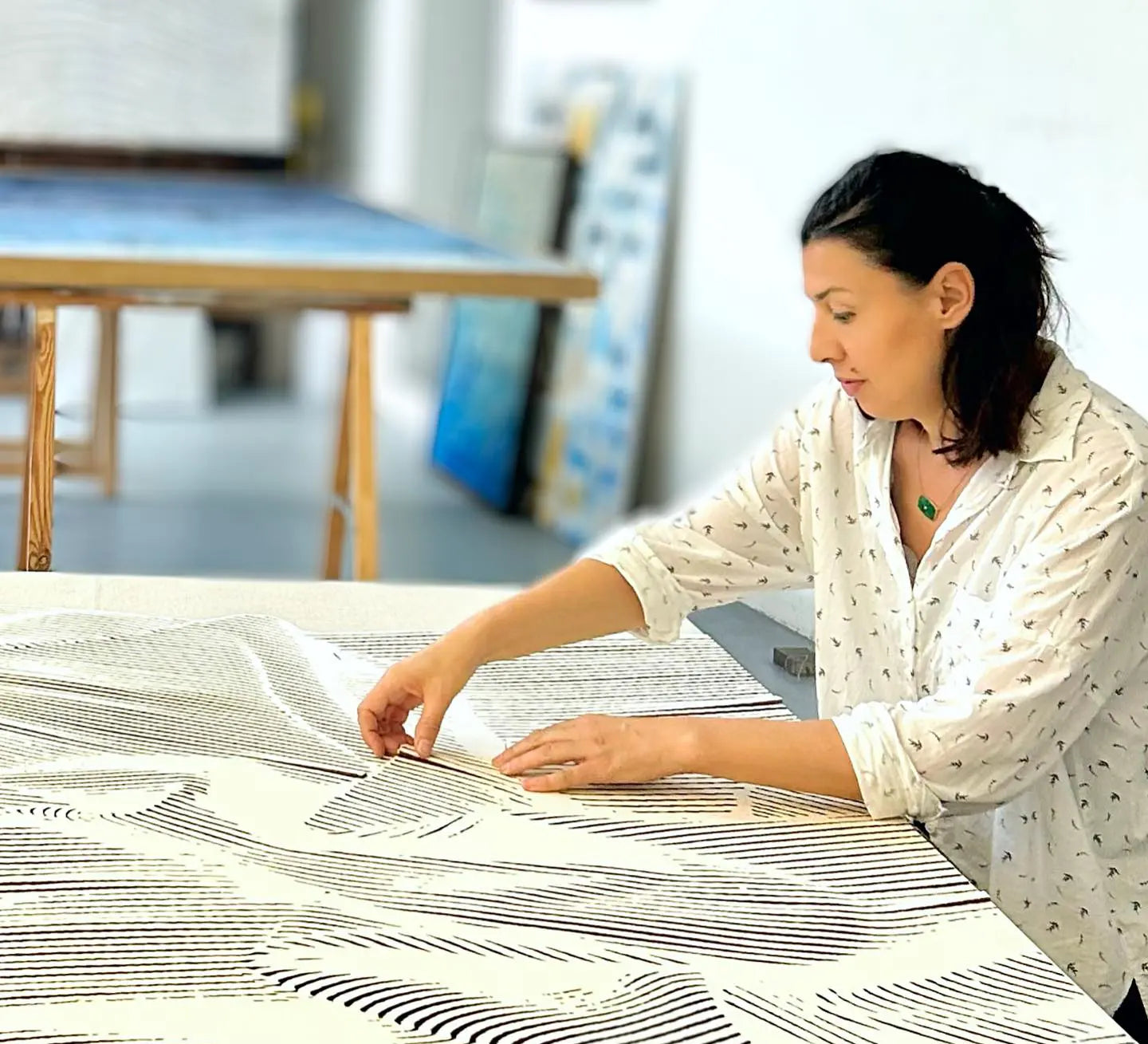Following this, I pursued studies in Textiles while continuing to practice as a designer. Simultaneously, alongside the abstract, I painted countless figurative pictures and created tapestries, weaving and knotting them all by myself.