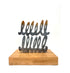 Message a hand-crafted aluminum sculpture, poised on a solid wooden base. This art piece is a striking representation of the intricate dance between thoughts, desires and emotions. Its abstract form, composed of fluid aluminium lines, conjures a sense of movement and complexity that speaks to the ebb and flow of our innermost desires. The sculpture's silver sheen against the warm wooden tones exudes a contemporary sophistication, making it a captivating art piece that promises to enhance the aesthetic of any space. Let it inspire you and stand as a focal point, inviting contemplation and conversation in equal measure.